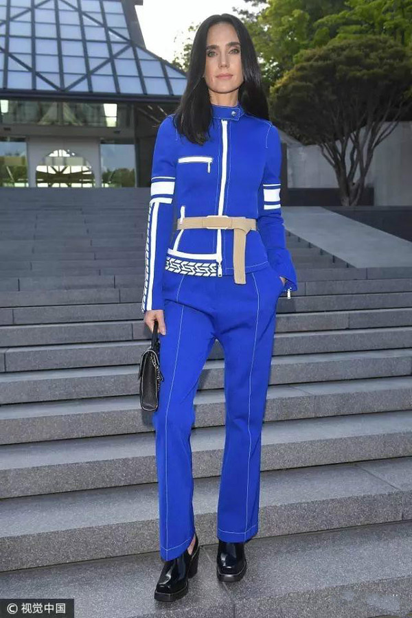 Louis Vuitton代言人Jennifer Connelly也來(lái)到了現(xiàn)場(chǎng)哦,她選擇了一身鮮艷的藍(lán)色套裝非常打眼,同樣也是來(lái)自Louis Vuitton2017秋冬系列的LOOK,簡(jiǎn)約、利落的線條把她襯托的更加高挑。