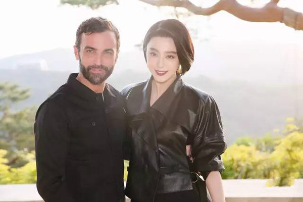 與設(shè)計(jì)師Nicolas Ghesquière親密合影