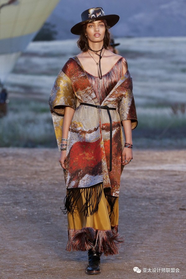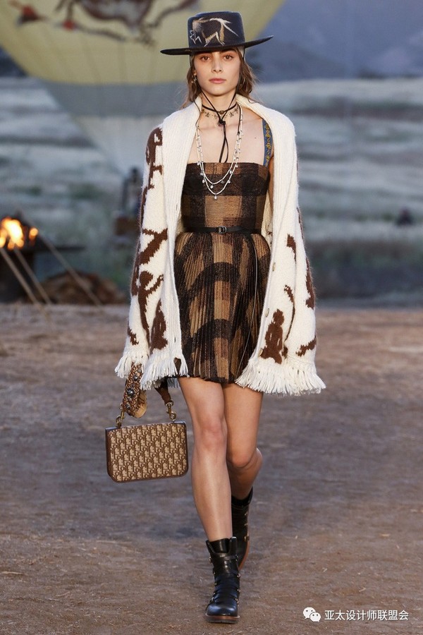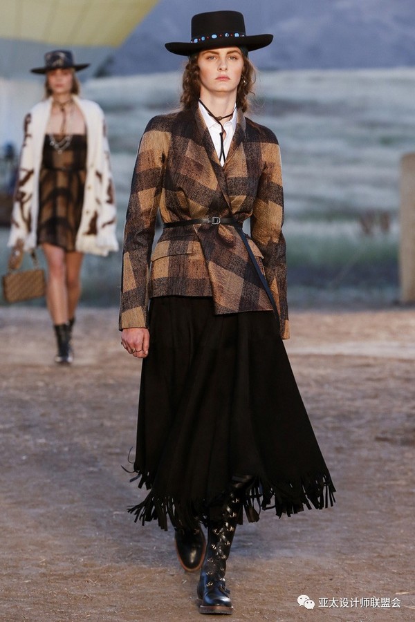 洛杉磯為迪奧歷任創意總監提供了無盡的靈感源泉。迪奧女裝創意總監Maria Grazia Chiuri通過此次發布秀續寫美國故事篇章,重溫這些專為旅途設計的系列佳作。來自曠野的自然色調和野性的西部元素,變幻新生的牛仔帽、帶著漂泊感的針織披肩、野性的皮草等等與狂野的格紋、流蘇完美配合,讓整個系列頗具帶入感,讓你按耐不住去開啟一場前往西部曠野旅行的沖動。