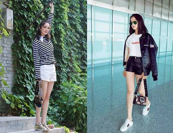 楊冪和宋茜都用寬肩包與運動休閑的look混搭,時髦不做作。