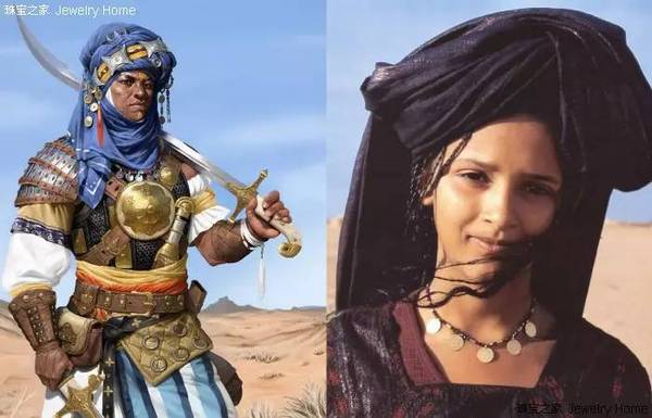 生活在北非利比亞、阿爾及利亞、尼日爾和撒哈拉沙漠地區的半游牧部落圖阿雷格以兩樣東西聞名,一是部落中的男性有佩戴藍紫色的面紗的習俗,因為他們認為那樣可以避邪,另一個就是他們的精湛的傳統手工技藝。圖阿雷格部落的手工藝術主要體現在三個方面,一是裝飾精美的馬鞍、二是被稱為“takoba”的長劍,還有一個便是精致的銀飾。