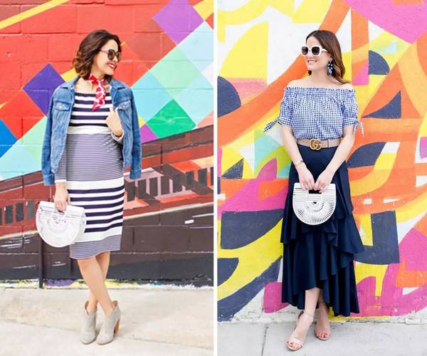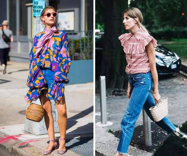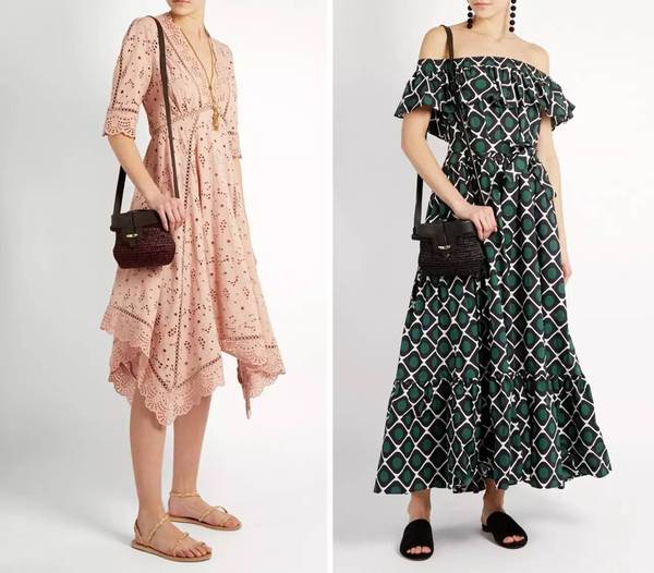 和菜籃子最配的還是連衣裙,純色和印花的都行,再有一點荷葉邊和泡泡袖的設計就更般配了,適合穿著去海邊度假。