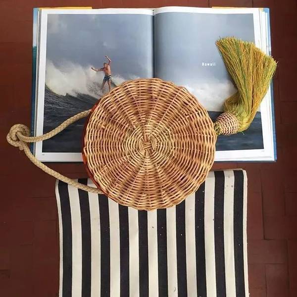 Ins上還有一個很火的牌子WAIWAI,所有的草編包都是在巴西手工制作,經典款是一個圓形的草編包,包包底部吊著長長的彩色流蘇,還蠻可愛的。