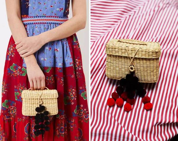 說到草編包,網紅品牌nannacay的mini 草編包也很受歡迎,包包上掛了一串可愛的毛球。