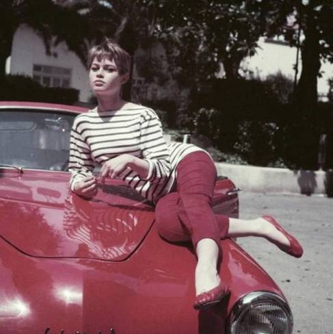 在 1956 年的電影《上帝創(chuàng)造女人》中,Brigitte Bardot 腳踩紅色亮面芭蕾舞鞋,斜臥在一輛老爺車上,優(yōu)雅迷人,這一形象日后也成為了經(jīng)典。▼