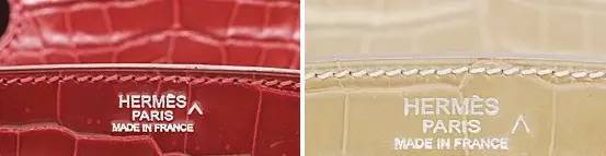 現在Hermes使用的鱷魚皮主要有3種,可根據包上的標記區分: