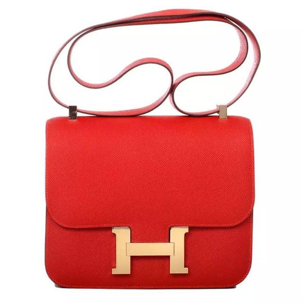 Hermes愛馬仕 Constance 紅色牛皮金扣女士單肩包