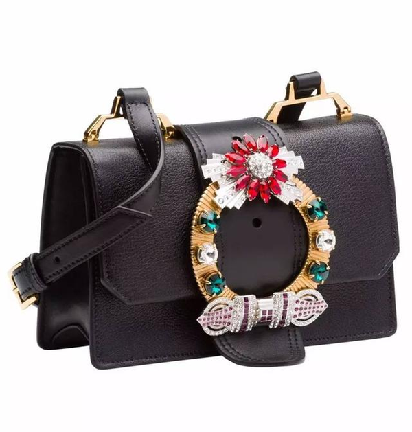 這款Miu Miu 2017春夏出的水桶包造型獨特,包身和包帶上“長”滿了小花朵,最受小女孩的喜愛了