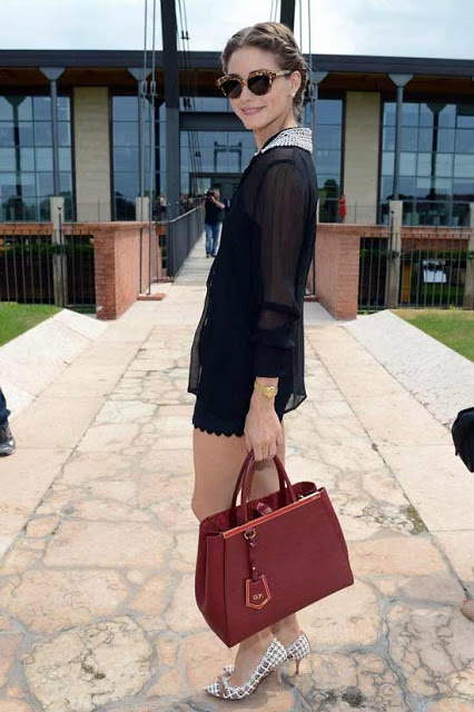 8. 另一款Fendi家的包包最近也很紅火,同樣優雅簡潔的2jours,像SJP在內的不少明星都很愛,酒紅,寶藍也很漂亮,黃色挺搶眼,但是可能對膚色氣質要求比較高.途中Olivia一身的黑白,一只搶眼顏色的包包立刻提亮整體顏色,喜歡簡潔風的MM更改備一款彩色包包.