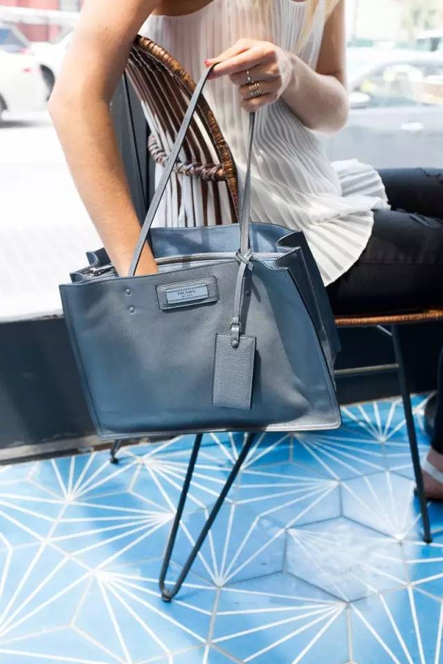 天藍色的麂皮襯里和外面的藍色標簽色調呼應