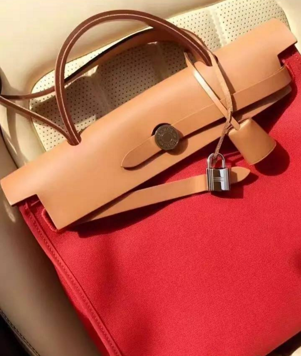 身上的枚紅色愛馬仕Herbag這個季節搭配衣服也是超級的好看。