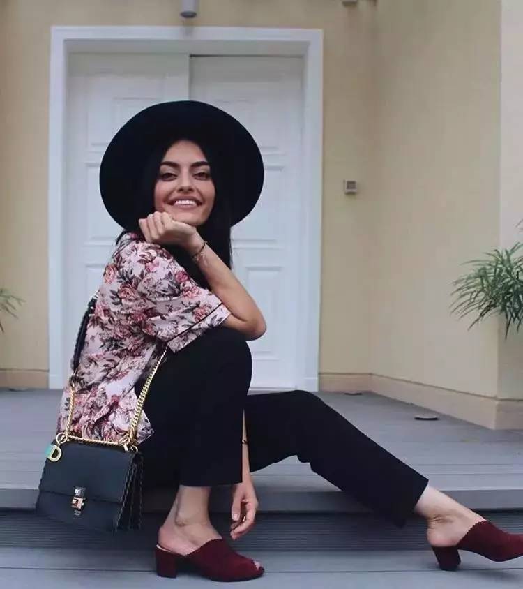背著Fendi的黑色鏈條包,帽子是亮點。