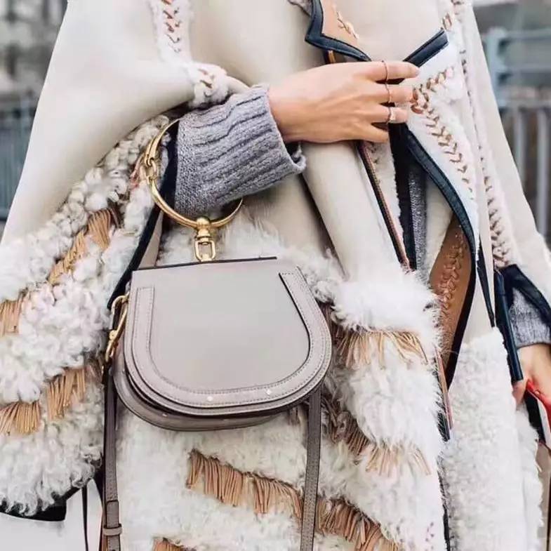 月牙形的包身和金屬手提環(huán)讓它整體剛柔并濟