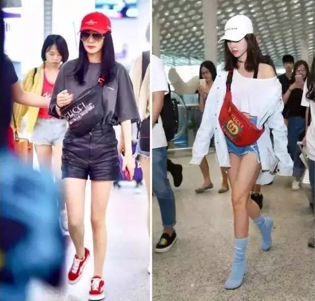 楊冪和蔡依林就撞了同一款來自Gucci家的腰包,同樣是斜挎的背法,兩人都搭配休閑運動風衣服,夠潮夠帥。