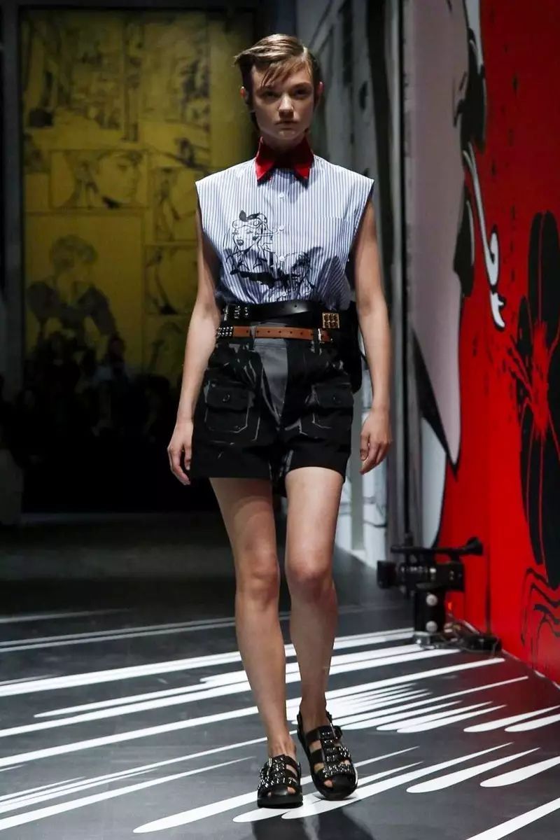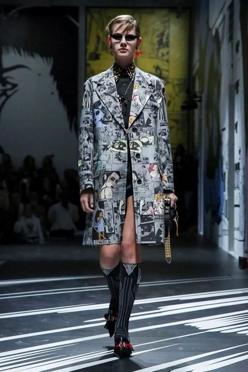 凌晨舉行的米蘭時裝周Prada 2018春夏系列大秀從秀場開始就賺足了人們的眼球,女裝發布和Prada男裝2018春夏時裝秀的秀場選在了相同的地點舉辦,現場沉浸在Prada攜手8位視覺藝術家完成的女性動作英雄漫畫中,倒是令人和走“二次元”風格的包袋設計聯想起來,依舊展現的是Prada無窮的創造力。