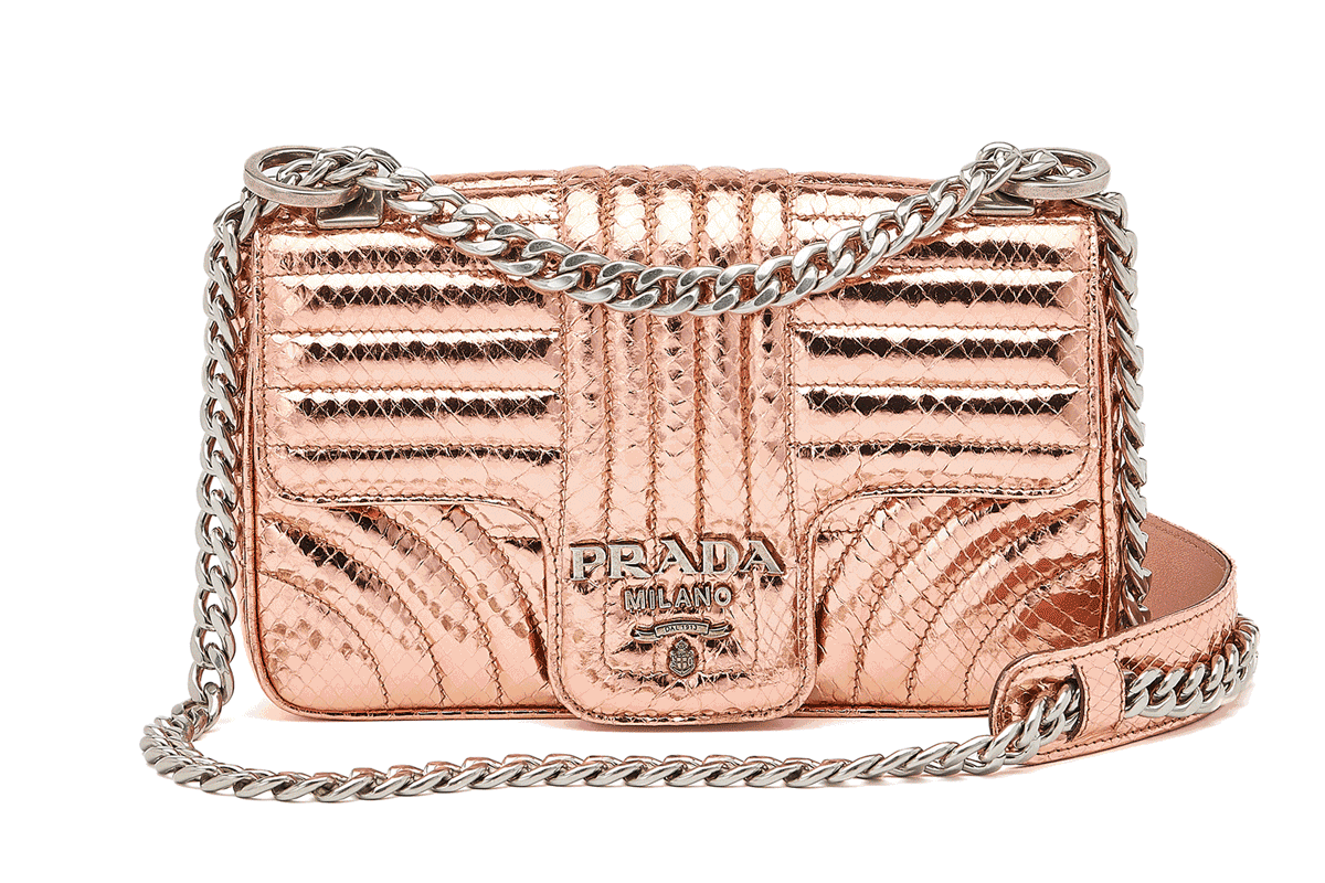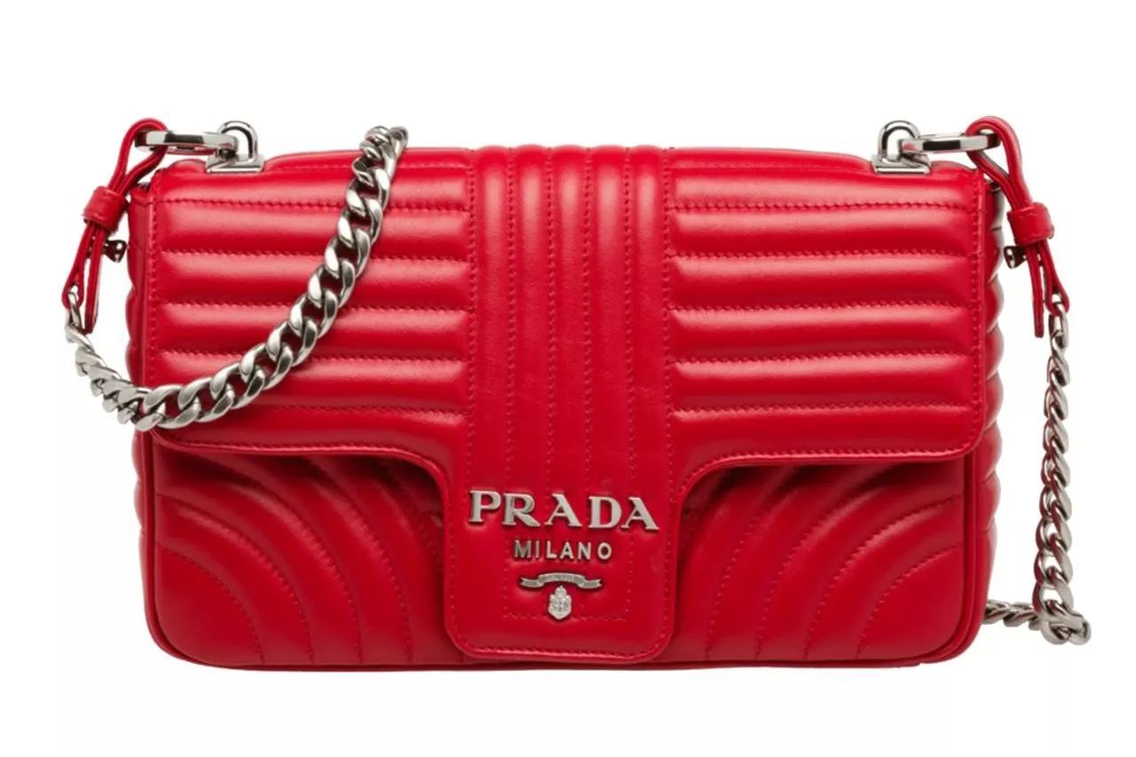 不同尺寸的紅色款Cahier包袋打破溫和印象,熾熱如火迎接新年。金屬光澤搭配幾何紋路的Prada Diagramme包袋讓新年伊始如此閃耀。