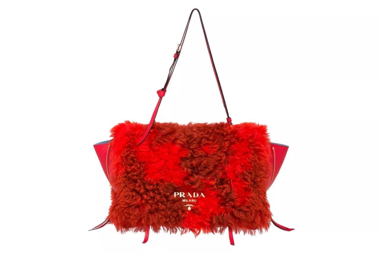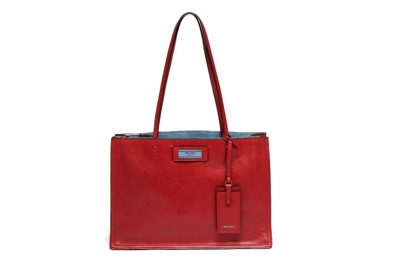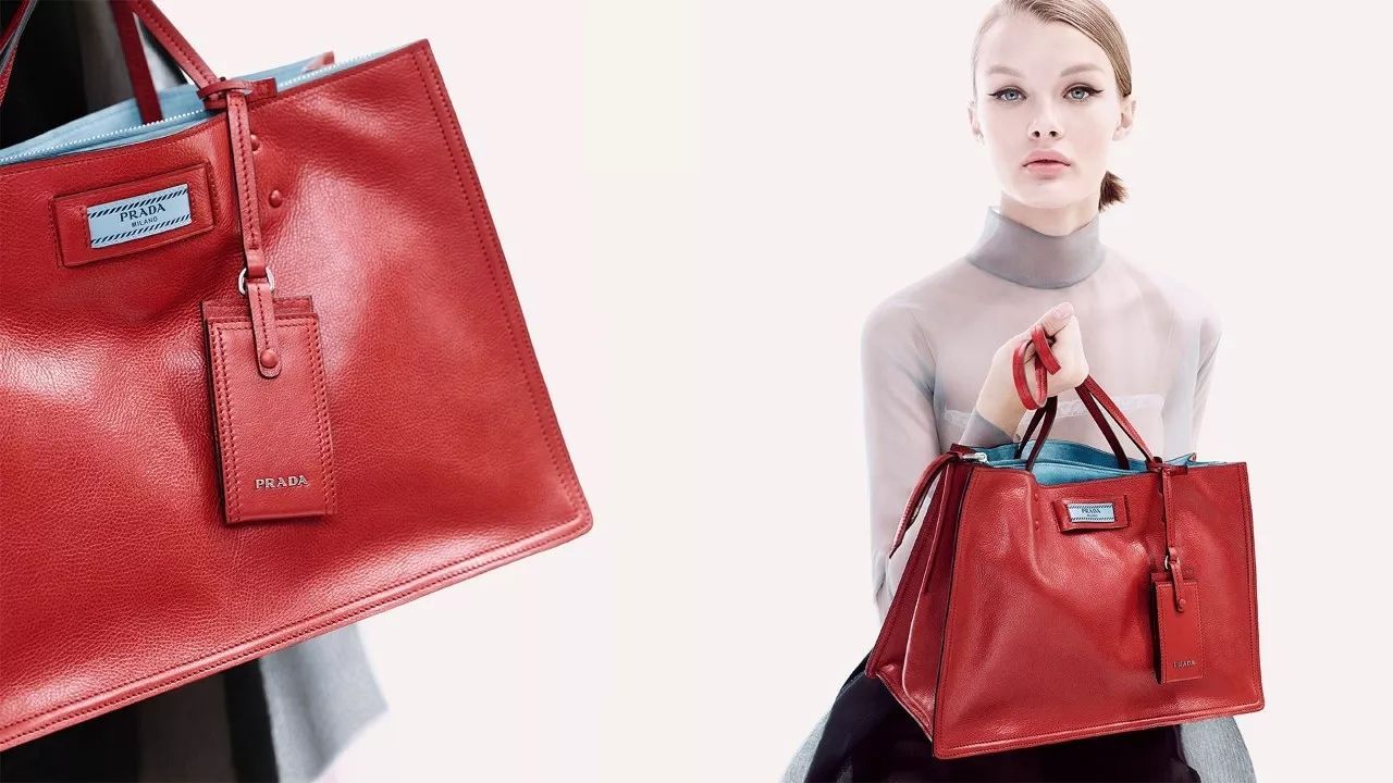 三種不同款式和材質的Prada Etiquette包袋演繹各自的紅色風情。