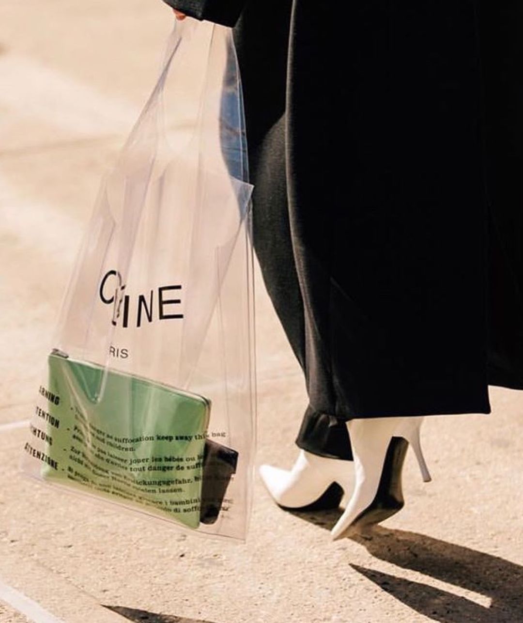 說真的,Celine這步營銷手段走的真的妙!這只PVC袋子用最簡潔的TOTE BAG造型加上字母logo印花,迎合了街頭、混搭、個(gè)性的時(shí)裝精的口味。