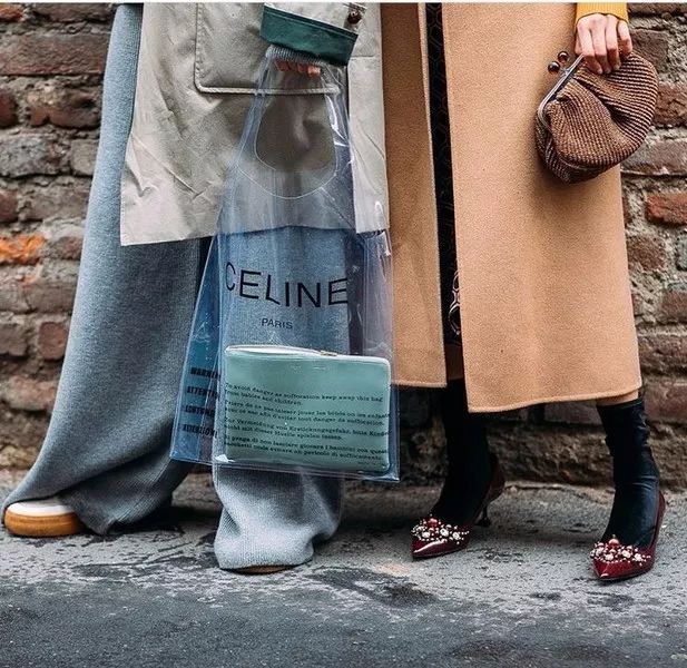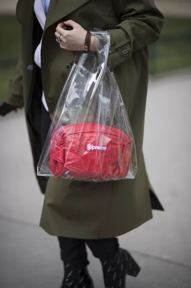 另外,如果你曾經(jīng)買過這種毫無logo特征的PVC袋子,現(xiàn)在拿出來混搭你的品牌包包,更是省錢又趕時(shí)髦的方式之一哦。