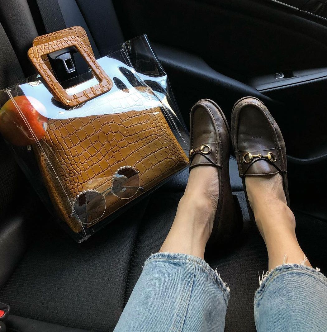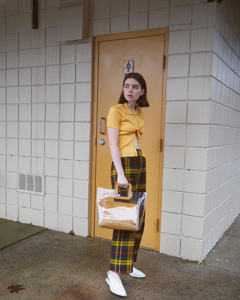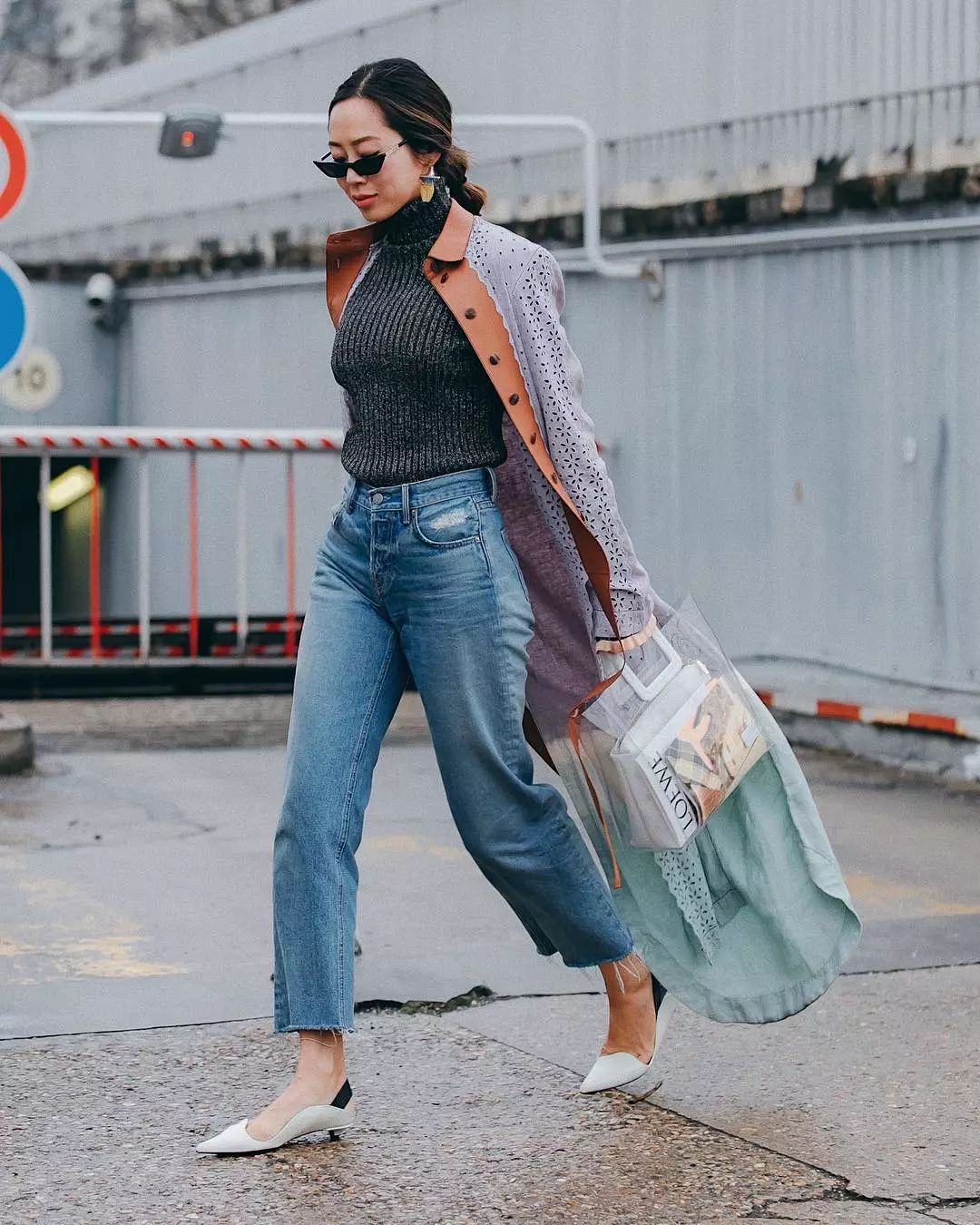 透明的PVC之所以受歡迎,想必也是因?yàn)橥该鞯牟馁|(zhì),可以玩出更多的混搭,博主Reese 就示范了一個(gè)包的兩種搭配。