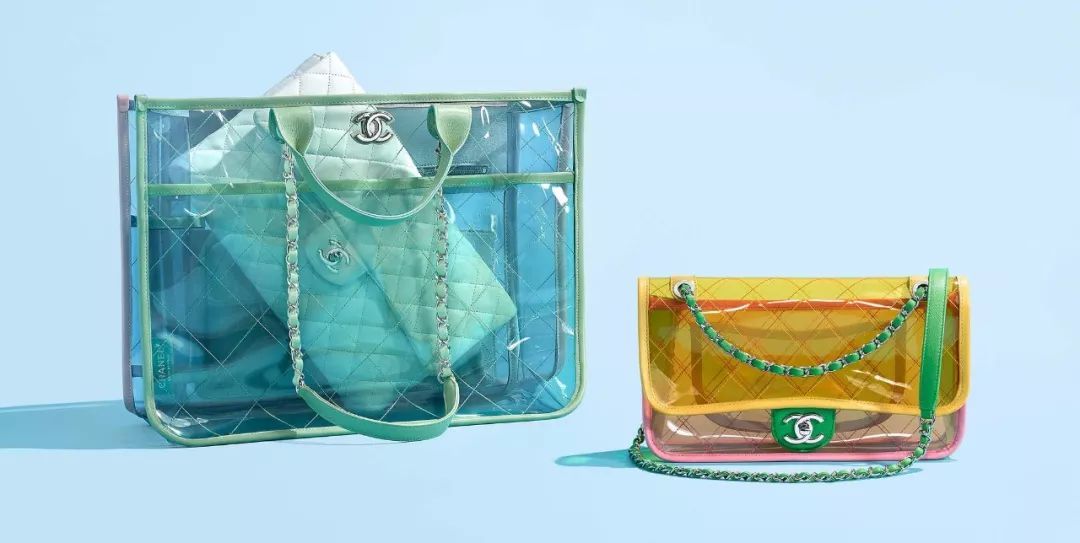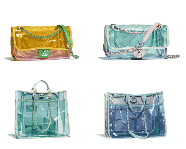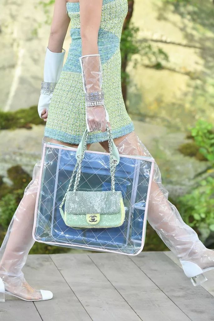 Chanel在2018春夏秀場上,也推出了超多的PVC單品,模特們幾乎是用透明PVC武裝了全身,其中PVC包袋也是多到數(shù)不過來。