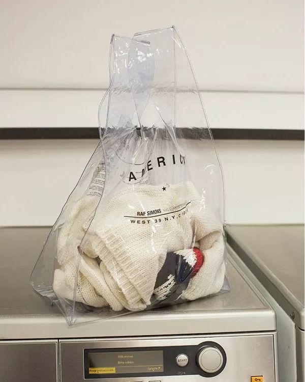 還有去年年底R(shí)af Simons 攜手 Voo Store 聯(lián)名推出的塑料袋,也和Celine有異曲同工之妙。