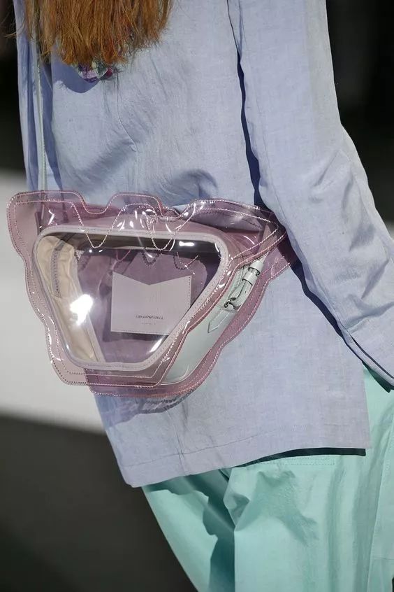 剛剛提到過的Emporio Armani,粉粉的搭配黑色物件,也能有一種不同于T臺(tái)的酷感。所以說透明PVC的玩法實(shí)在太多了,怪不得真的是人人愛。
