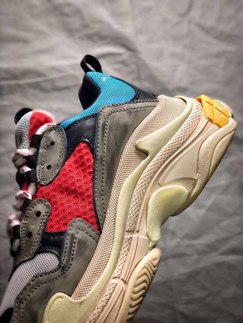 首先給大家科普一下巴黎世家姥爺鞋,他又稱TRIPLES,就是將田徑鞋、籃球鞋、跑步鞋的鞋模進行三合一,汲取各自優點,打造成一雙前所未有的運動鞋。