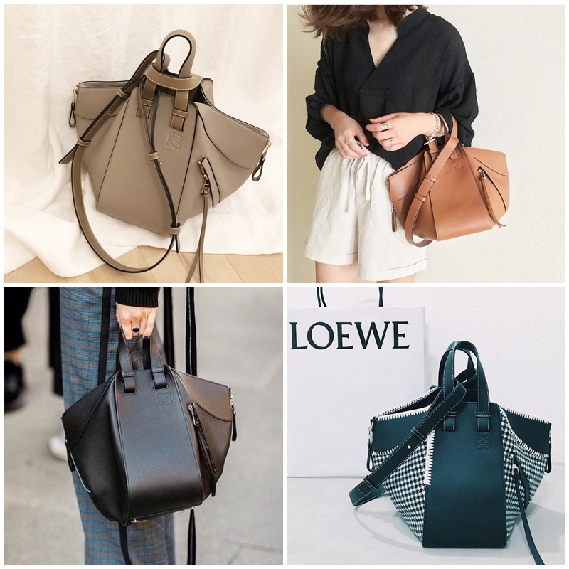 近期推出Mini新尺寸的Hammock Bag,也可說是LOEWE超經典又熱門的包款之一,入手率與出鏡率都十分之高!名稱中的Hammock的意思為吊床,即是它包款的設計靈感來源,結合品牌的幾何概念去打造,正面看是一款長方形的簡約手袋,而從側邊看它則是一個三角形、類似水桶包的概念,側邊有拉鏈設計可打開形成傘狀,且將其全撐開后容量超級足夠,是一款兼具了時尚外型及功能性的包款!