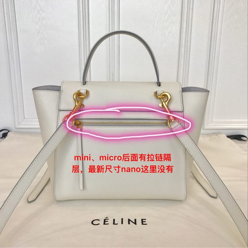 接下來我們看看包包的背面,mini和micro的后面有拉鏈隔層,最新的nano的后面沒有
