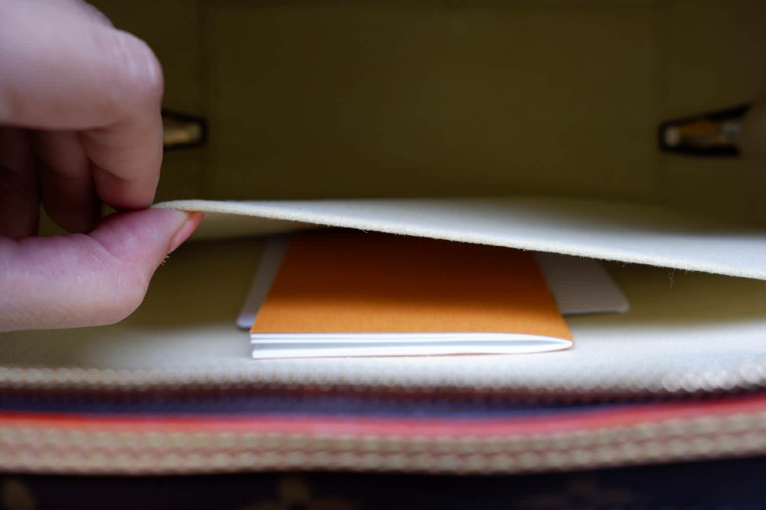 內袋兩側都有小口袋,可以放些發(fā)票,名片,口紅零錢什么的。