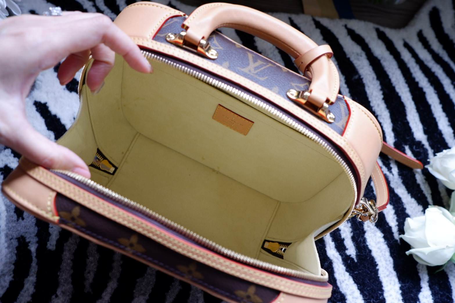 這款叫Mini Luggage (M44581),但相較于其他的mini系列,我覺得這款一點都不mini唉,比很多正常尺寸的包款都還來的大容量。在收邊的VVN皮革上也先做好age的處理(也就是不像一般lv包包的皮革部分都要自己經過使用或是曬一下太陽才不會那么白,這款已經貼心的曬好了哈哈)然后雖然叫做luggage,但因為并不是硬箱類的設計,所以在重量上也滿合理的。