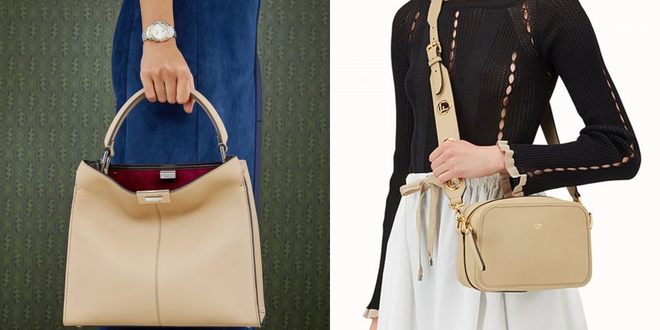 Peekaboo的設計外型看起來端莊典雅,扣環打開,則會露出內層可愛俏皮的設計,也讓包包變得更加有趣,不關好扣頭也是一種時尚表現,而女生們幾乎人手一個的相機包,FENDI配上了FF Logo背袋更加時髦!米色的配色較為優雅,因此日常上班時也能配戴。