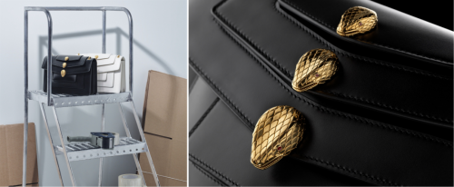 經典魅惑靈蛇此次化身前衛代表,為寶格麗經典款式注入嶄新活力。聯名系列均采用經由Alexander Wang重新詮釋的復古蛇首造型搭扣, 魅惑蛇首在靈感碰撞之下盡顯前衛時髦態度。雙層翻蓋肩包,內里配有實用口袋,展現強大功能性;三層翻蓋單肩包,將蛇首搭扣延伸為三只,猶如“護身符”令該款手袋別具魅力。