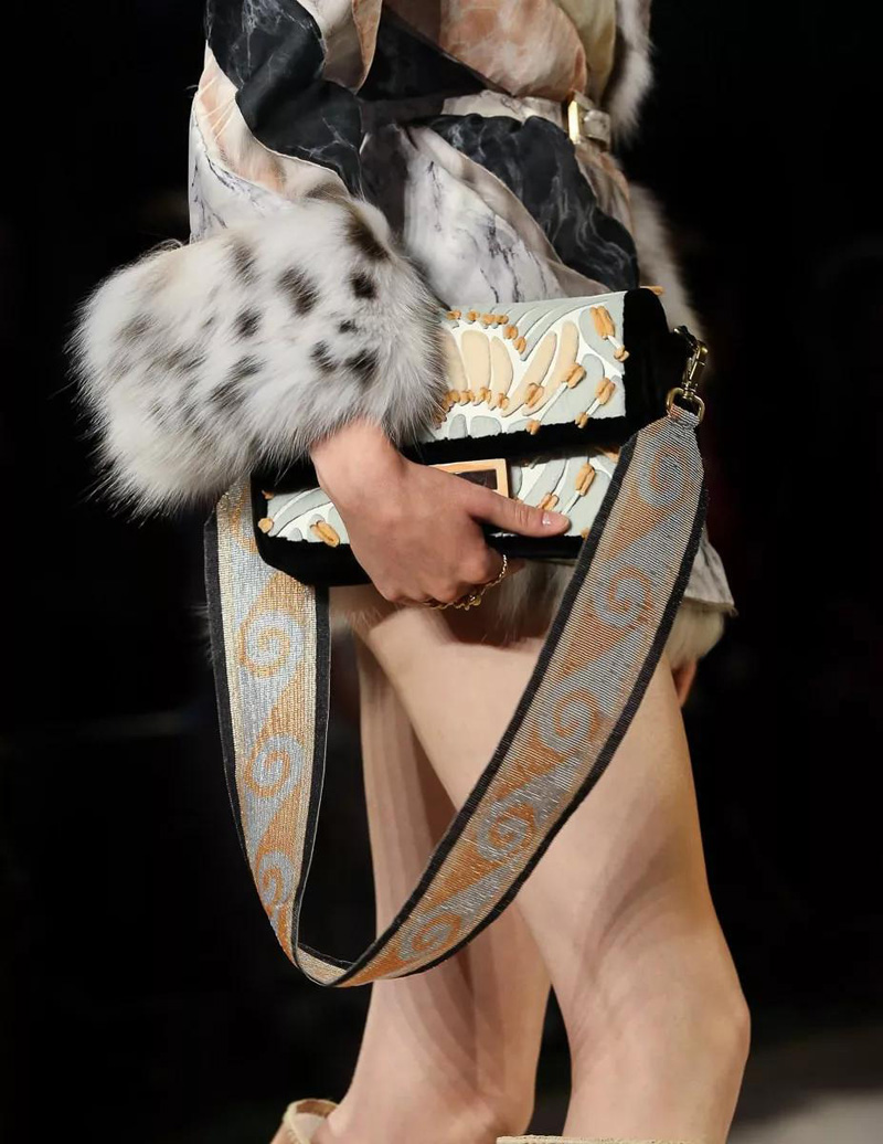 芬迪FENDI2019秋冬高級定制包袋一覽,Fendi此季在羅馬進行的高級定制秀,高級定制系列更加華麗奢華,并不是每日都在使用,刺繡,毛皮,串珠,紗織,立體復古的圖案,充分展現了時尚藝術與文化的融合風格。