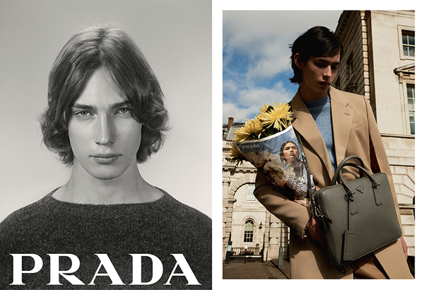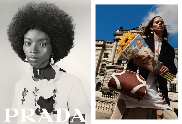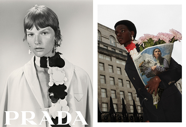 Prada力邀兩位攝影師呈現對立而鮮明的人物形象。紐約攝影師Drew Vickers以從容、優雅的肖像風格享譽全球,敏銳地凸顯靜謐而溫和的人類情感。大片既描畫模特,亦抒發情感,傳達對時尚的真實理解。日本攝影師北島敬三的作品風格則截然不同。自20世紀70年代至今,北島敬三將鏡頭對準真實而動態的街頭。其拍攝的照片中,模特手持廣告大片包裹的花束,散發鮮活氣息。鏡頭抓拍情感的自然流露,模特擺出相同的手勢,邀觀者一同感受日常生活。廣告大片以雙聯畫的形式呈現,彼此呼應,亦附和畫面之外的真實世界,展示現實生活的兩面性。