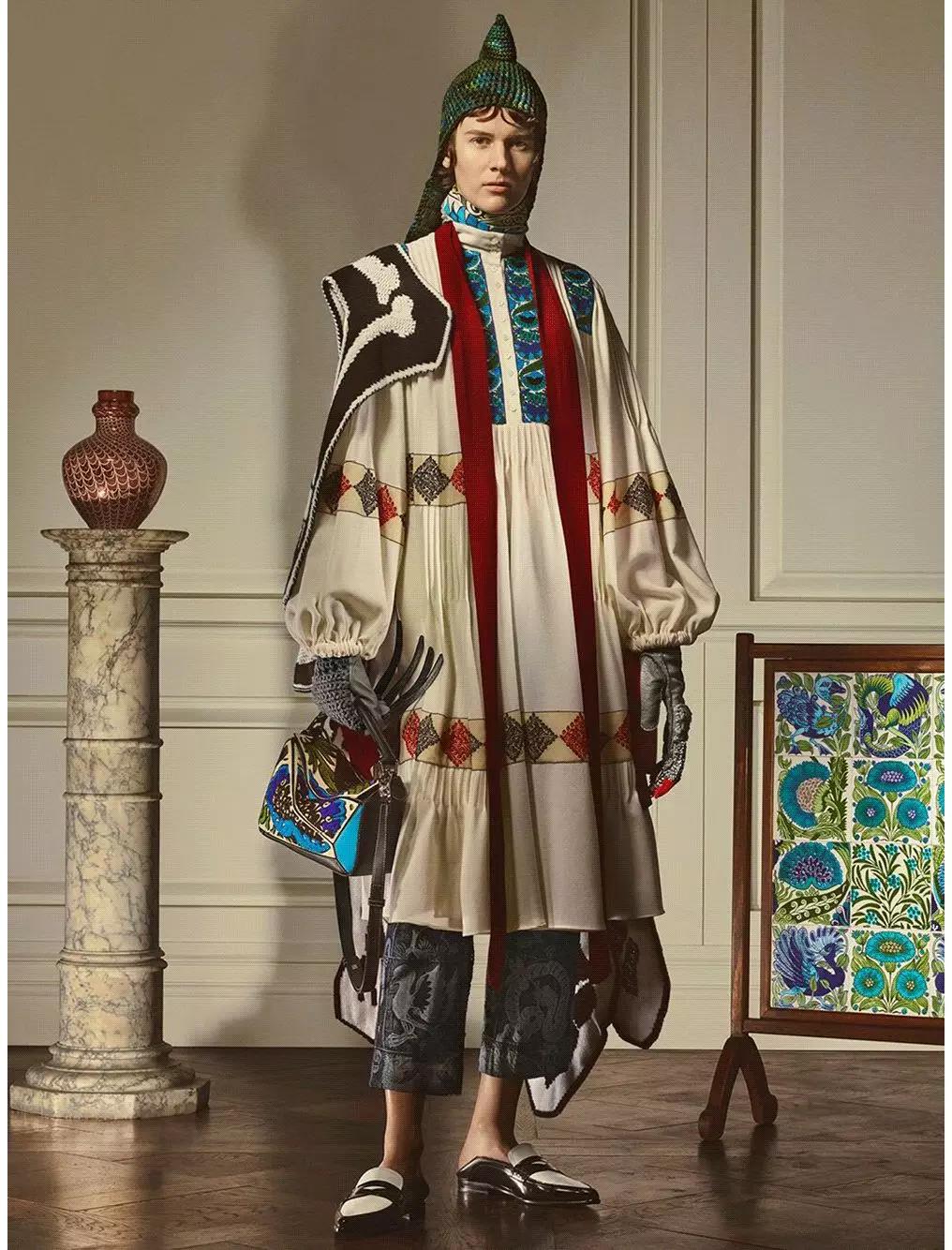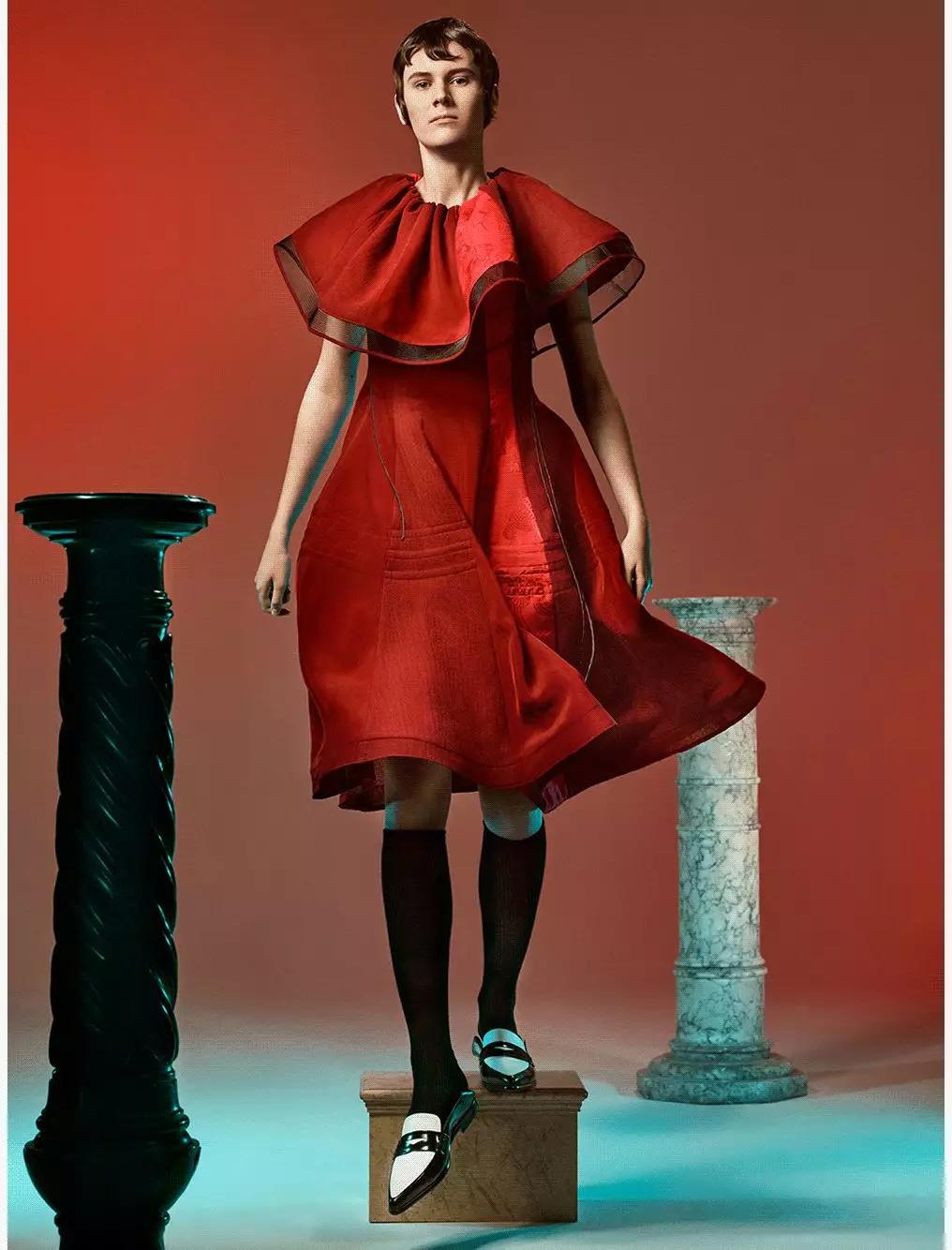 當(dāng)William De Morgan的奇幻作品在時(shí)裝上煥然新生,翩翩紅色長裙如荷葉邊自在舒卷,露肩泡泡袖長裙起舞,靈動(dòng)魅力流動(dòng)于花紋與褶裥間。