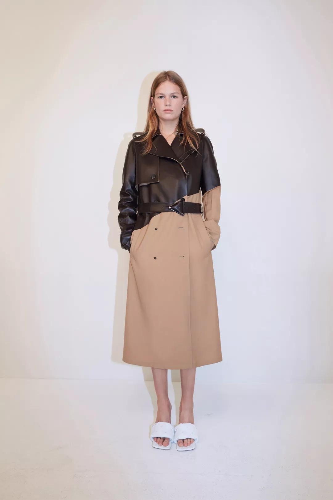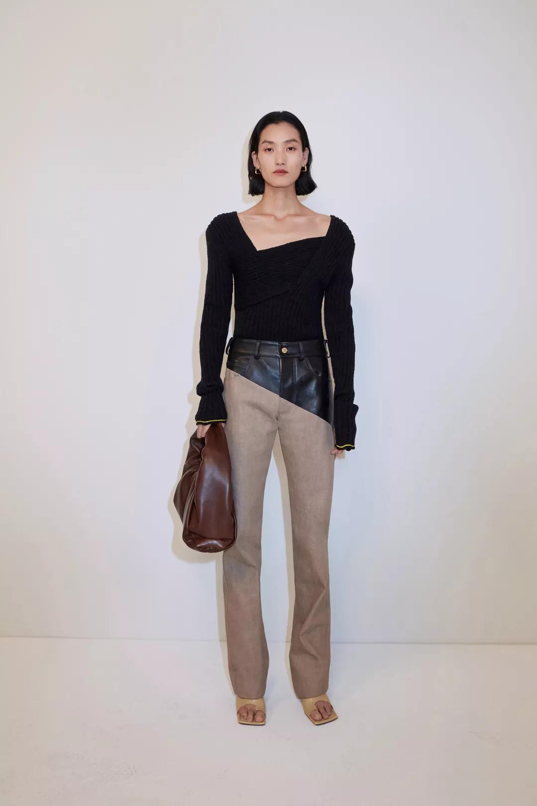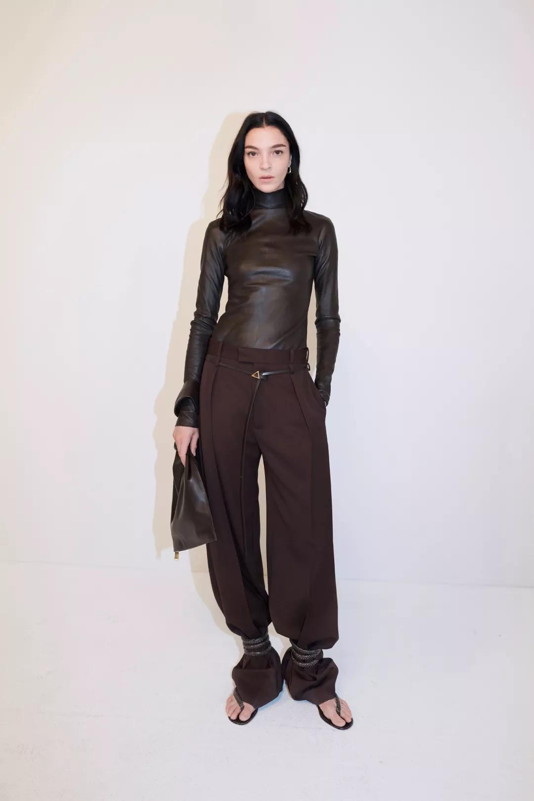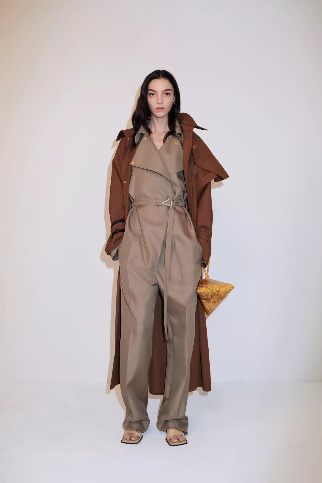 針織衫領(lǐng)口交織細節(jié)完美融合intrecciato編織,精進風(fēng)衣型格,一種輕松的舒適感,于廓形中得到新詮釋!