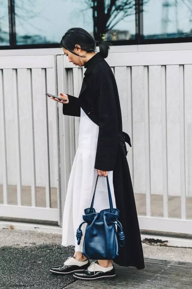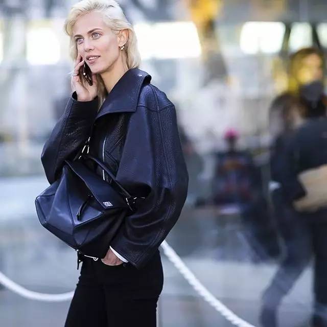 東西放不滿時,自然松垮有型,有點像超現實的建筑模型,街拍都洋氣瀟灑,后背非常帥氣。在以mini bag橫行的今天,這個包包簡直不要太實用,內里空間大,非常能裝,適合通勤,休息正裝都能搭配。