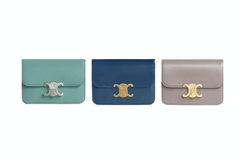 更重要的是,Teen Triomphe有目不暇給的顏色和材質選擇,除了最百搭常見的黑色小牛皮外,CELINE官網上還可見花卉緹花、水蛇皮拼花等,鵝卵石灰、莓紅、灰藍等色彩亦可優雅可活潑,哪一款令你最想帶回家呢?