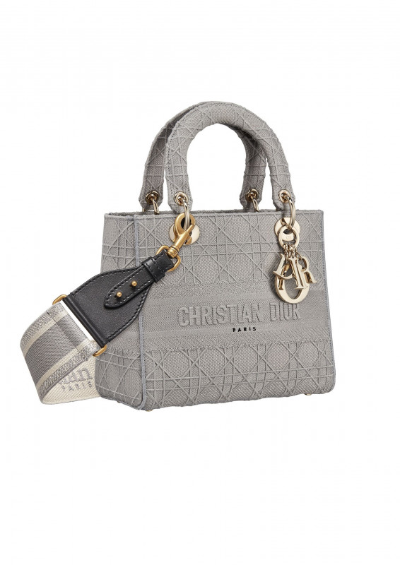金屬配件包含:環扣、提把孔眼到象征品牌意涵的金屬字母吊飾,重新詮釋迪奧先生相信命運而隨身攜帶的幸運金幣,同時點出鮮明的標志性設計,也為整只包款增添優雅氣息。每一個細節的處理都是悉心照會的呈現,完整Lady D-Lite從容優雅的時代容顏,嶄新的書腰式Christian Dior品牌簽名設計,透過現代繪圖式字型表現;對應相同式樣的寬背帶完整了全新Lady D-Lit 的經典新風貌,從灰色、黑色、粉色到米色豐富了各種場合搭配的可能性。