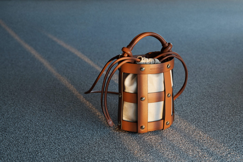 Salvatore Ferrgamo以輕巧的建筑感結(jié)構(gòu)改造水桶包型,并且在經(jīng)典的單色皮革款式之外,推出與法國(guó)藝術(shù)家Julien Colombier合作的罌粟印花絲綢內(nèi)袋,致敬品牌另一標(biāo)志性單品——絲巾,也為Cage鳥(niǎo)籠包背后的創(chuàng)意故事再添深度。