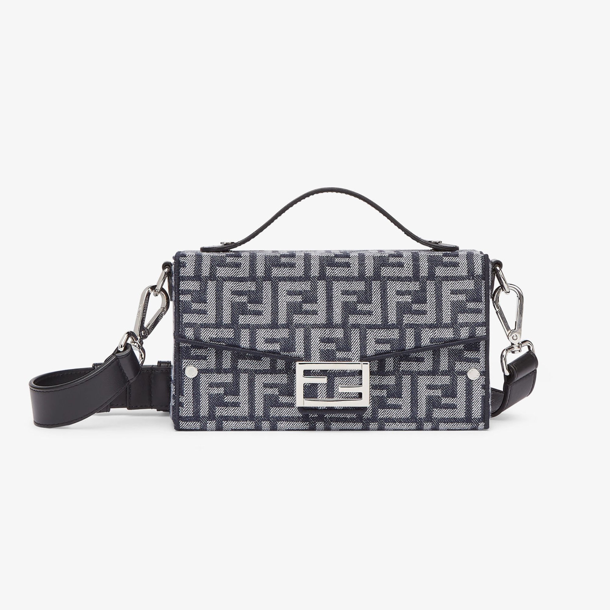 這款 Soft Trunk Baguette 法棍包采用深藍色牛仔布打造,通體飾以「FF」提花刺繡圖案,風格輕松又具強烈辨識度。