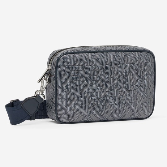相機包和腰包亮點是條紋印花背景上飾有「FENDI Roma」凸紋標志,展現出色的層次感;最引人注意的是一款扁平手拿包,采用淺灰色和藍色條紋小牛皮打造,深淺色調流露出光影效果。