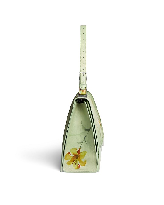 淺綠色 Crush Sling 手袋上呈現(xiàn)的是白色和黃色百合花圖案,為包包注入悠然恬淡的意境。