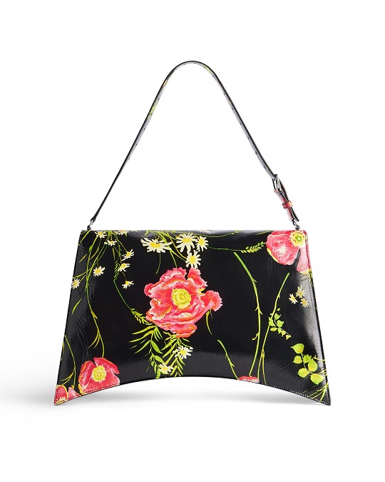另外兩款大號 Crush Sling 手袋以冬季23系列主題花卉印花重新詮釋,黑色包身上鋪滿紅色虞美人圖案,浪漫花卉元素與包包本身的強(qiáng)勢氣場形成微妙平衡。