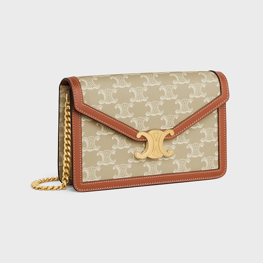新系列共推出5款包袋作品,Teen Triomphe 肩背包和 Triomphe 鏈帶錢包以米棕色老花帆布搭配棕褐色小牛皮飾邊,明縫車線凸顯利落廓形。淺米色 Triomphe 標(biāo)識以陰影漸層變化打造出立體浮雕效果,襯托中央金色凱旋搭扣,米色、奶茶色、棕色層層遞進(jìn)的色調(diào)呈現(xiàn)舒適和諧的觀感。