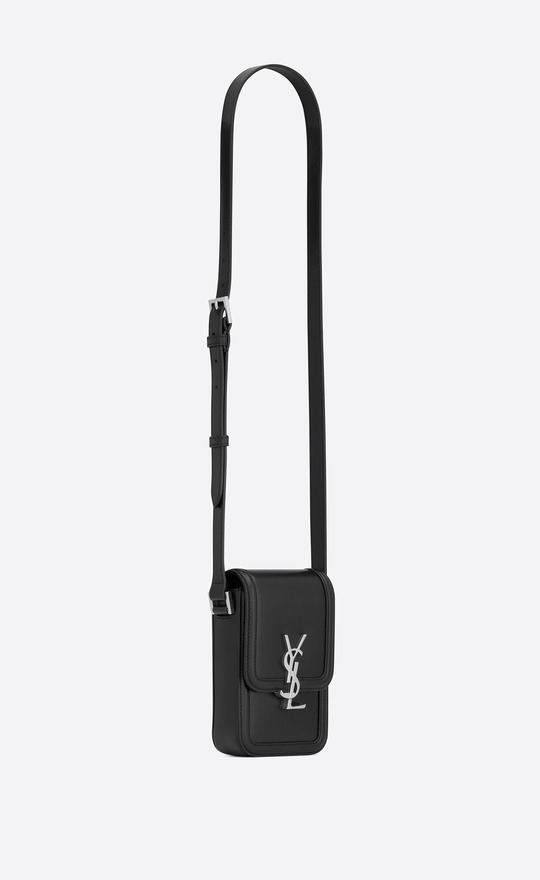 SOLFERINO 迷你挎包適合作為男士日常便攜的手機包,YSL 銀色金屬包扣在迷你包型上更為亮眼。