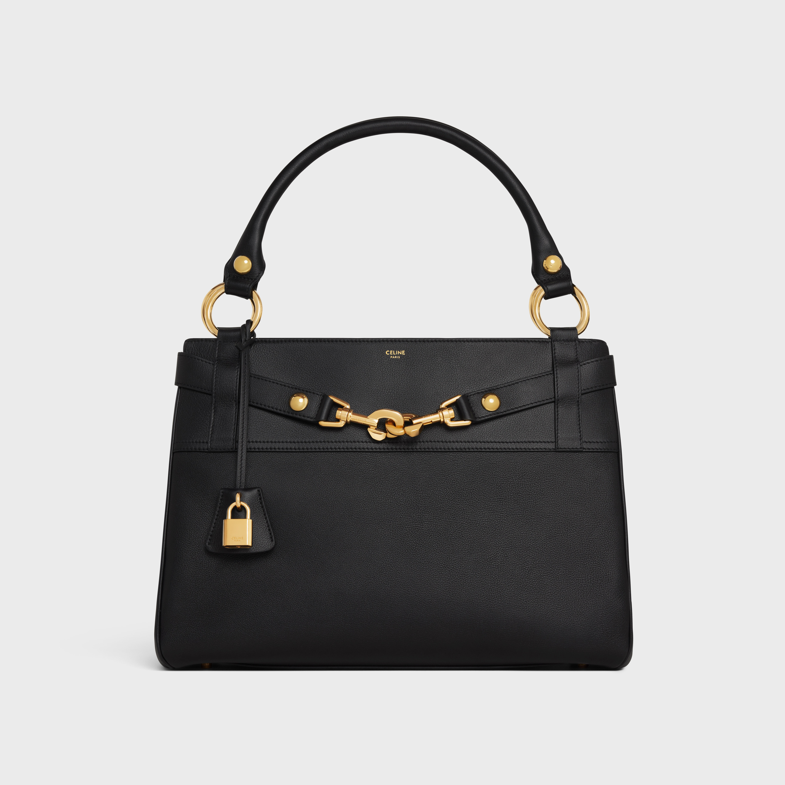 Annabel 手袋呈現洗練利落的梯形結構,適合作為干練的公文包。這款包包最具設計感的是包口2條皮革飾帶,由2個金色金屬鉤扣銜接,經過拋光處理展現閃耀的金色光澤。