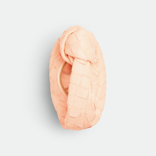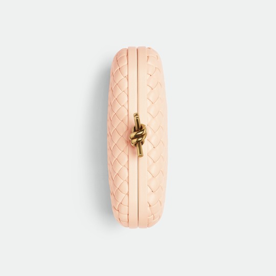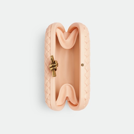 Knot 晚裝包依然在盒型輪廓上包裹柔軟 Intrecciato 小羊皮,頂部金色金屬繩結雕塑成為亮點。